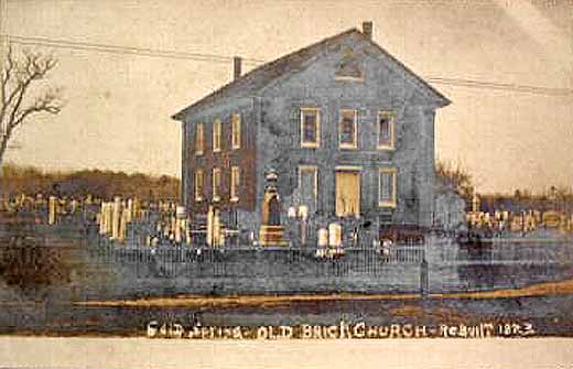 This slightly different version of the secomd card reflects the fact that the Old Brich Church is not the first church on the site. In 1718 a log meeting house was erected there. A larger frame meeting house was constructed in 1762. As noted above, the current church dates from 1823.