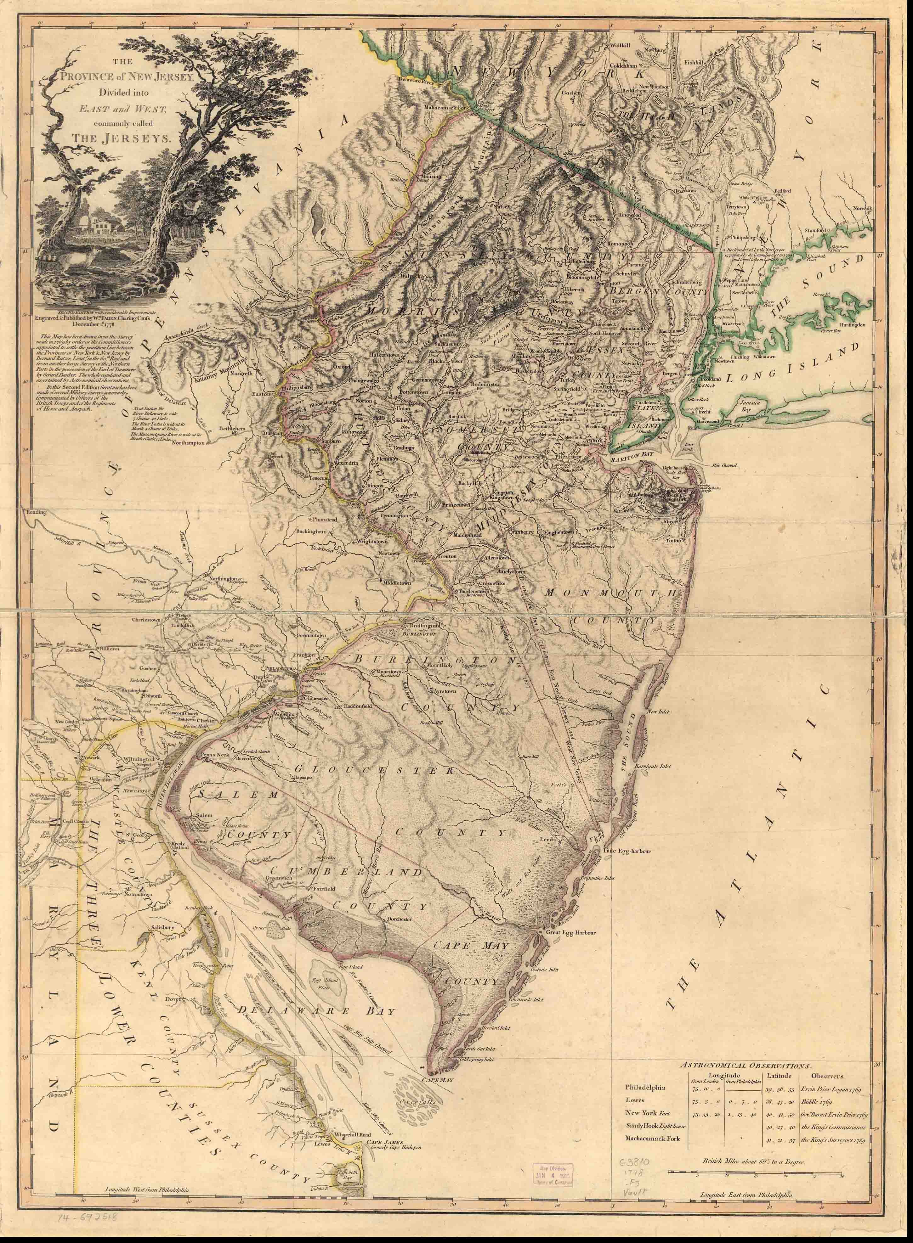 Revolutionary War Era Maps - One of two Faden Maps of NJ - 1778